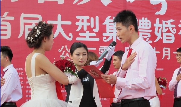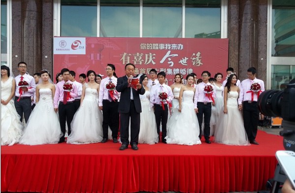 2014年 10月10日上午,20对新人在八佰伴广场舞台走上红地毯,“你的婚事我来办”有喜庆今世缘.南通首届大型集体婚礼暨“新人看新南通”活动启动仪式正式开始。